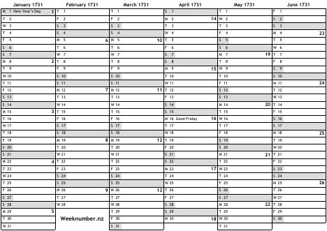 1731 calendar