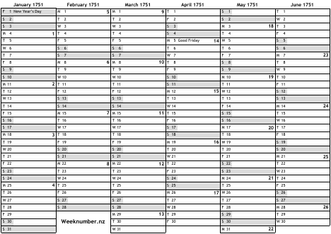 1751 calendar
