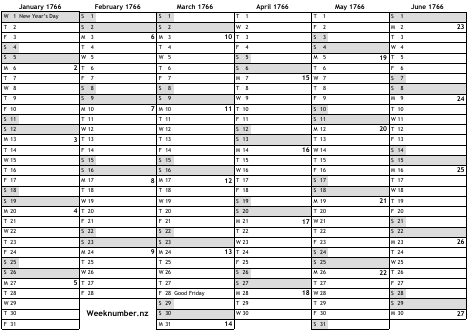 1766 calendar