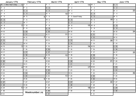 1776 calendar