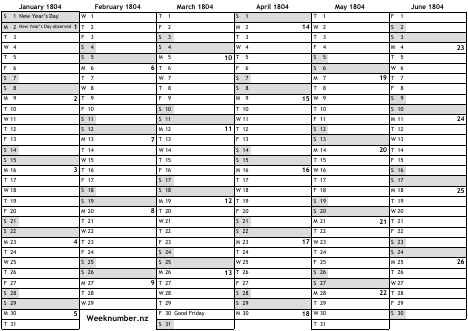 1804 calendar