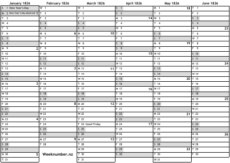 1826 calendar