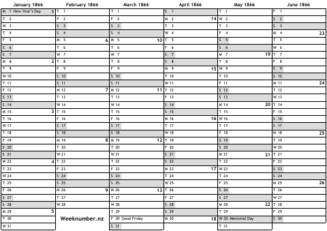 1866 calendar