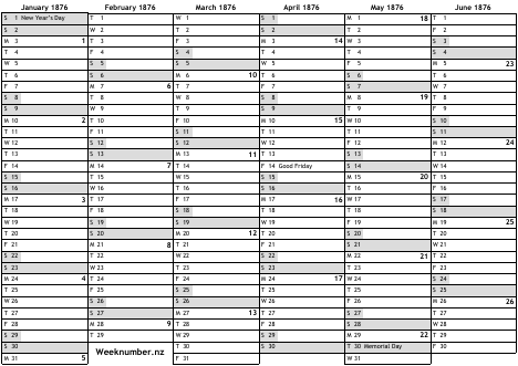 1876 calendar