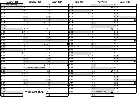 1881 calendar
