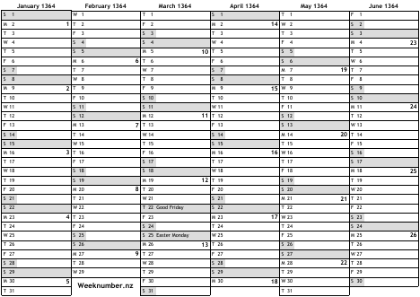 1364 calendar