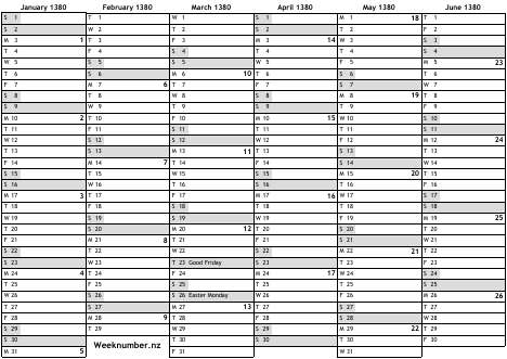1380 calendar