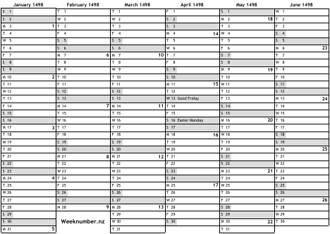 1498 calendar