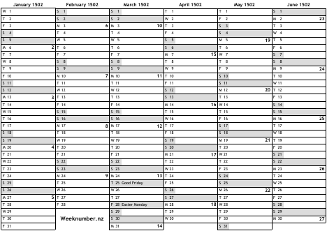 1502 calendar