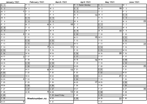 1521 calendar