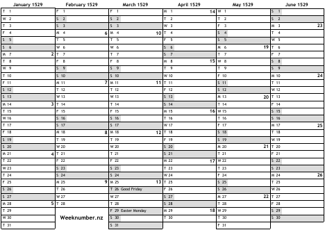 1529 calendar