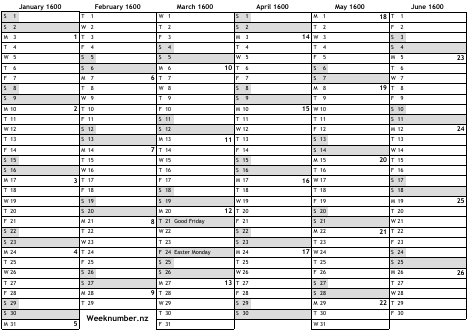 1600 calendar