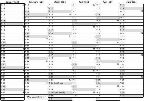 1624 calendar