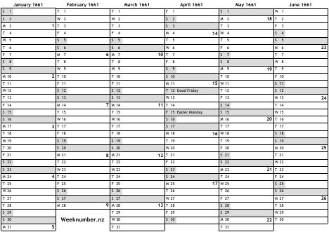 1661 calendar