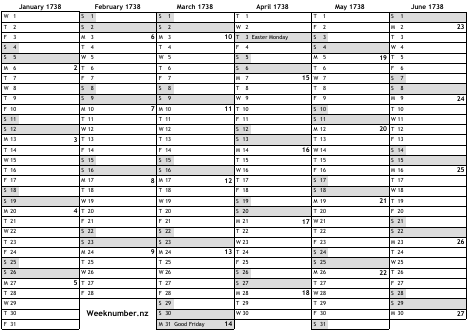 1738 calendar