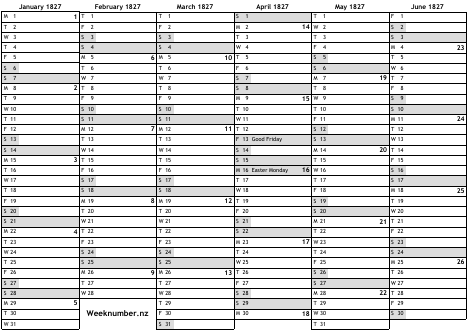1827 calendar